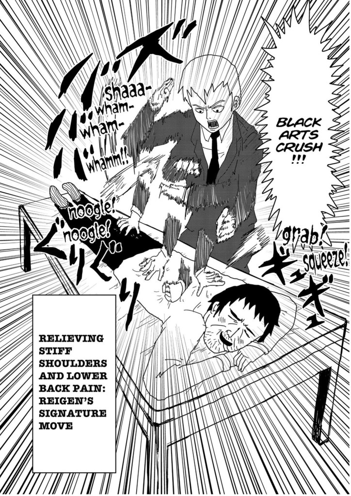 Often, people come to Reigen for exorcisms even though they are not necessarily haunted. So, Reigen pretends to exorcise them, when in reality he’s fixing the actual cause of the problem (in this case, his client’s back issues).